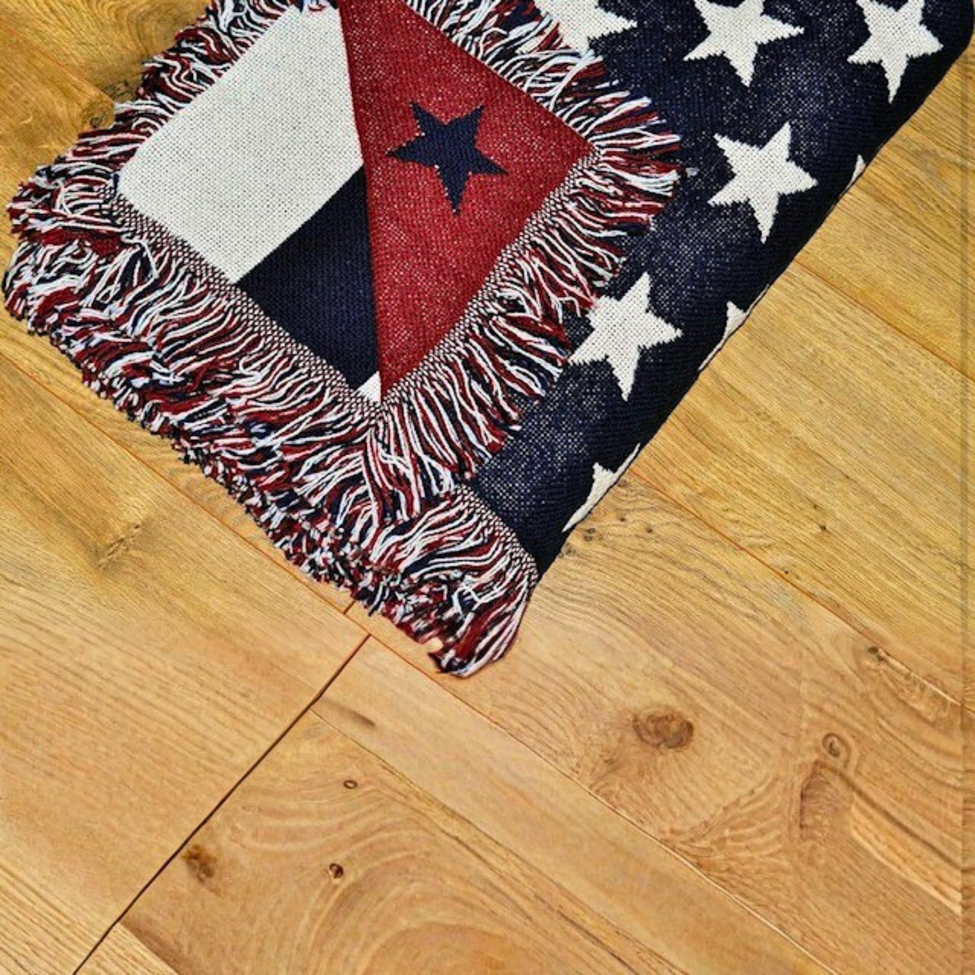 Woven Blanket Throw - Patriotic USA Flag Cozy Home Decor. Eco-Friendly, sustainable 100% cotton. Made in the USA.