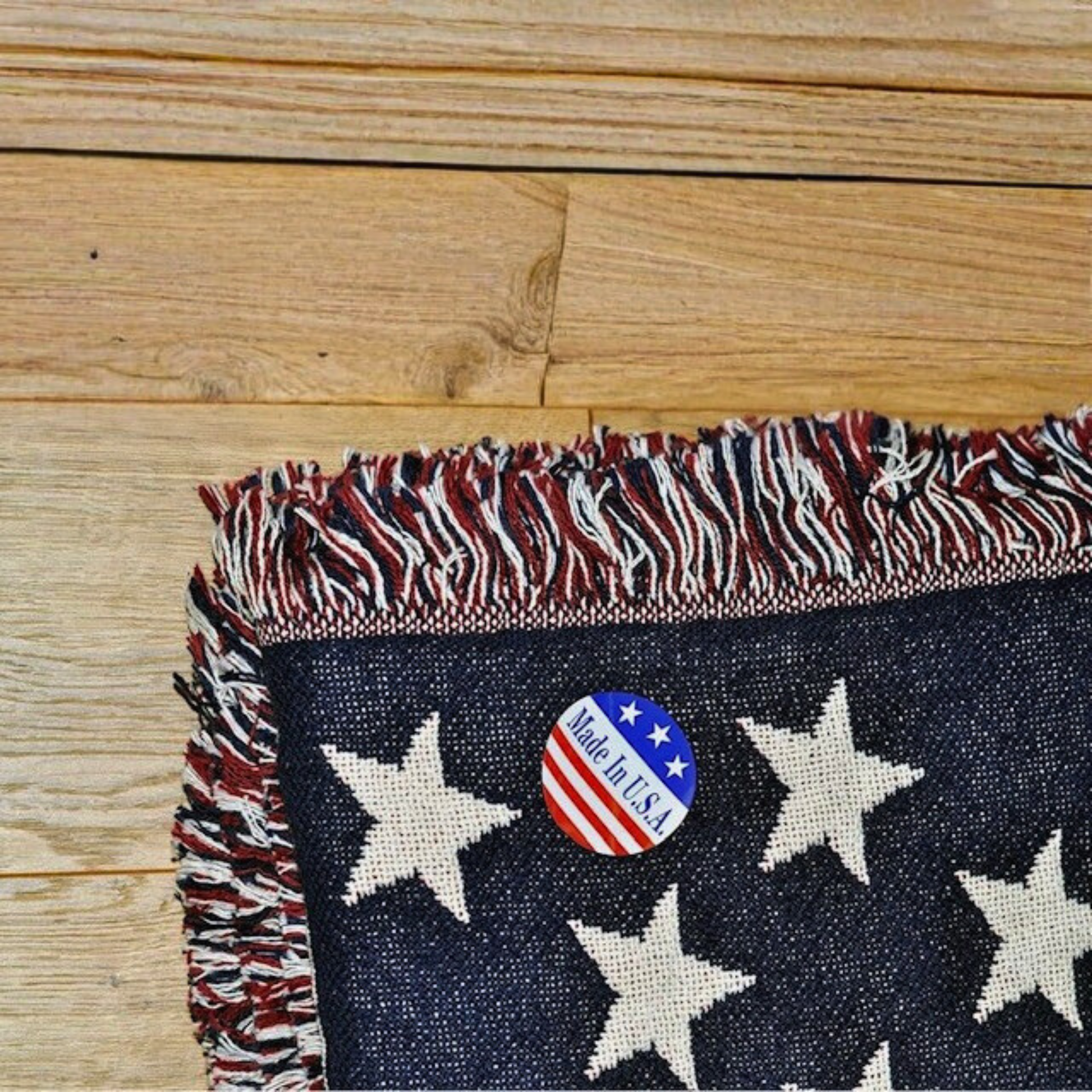 Stay cozy and patriotic with this USA Flag Woven Blanket. Perfect for adding a touch of Americana to your home or an excellent gift. 100% cotton. Made in the USA.